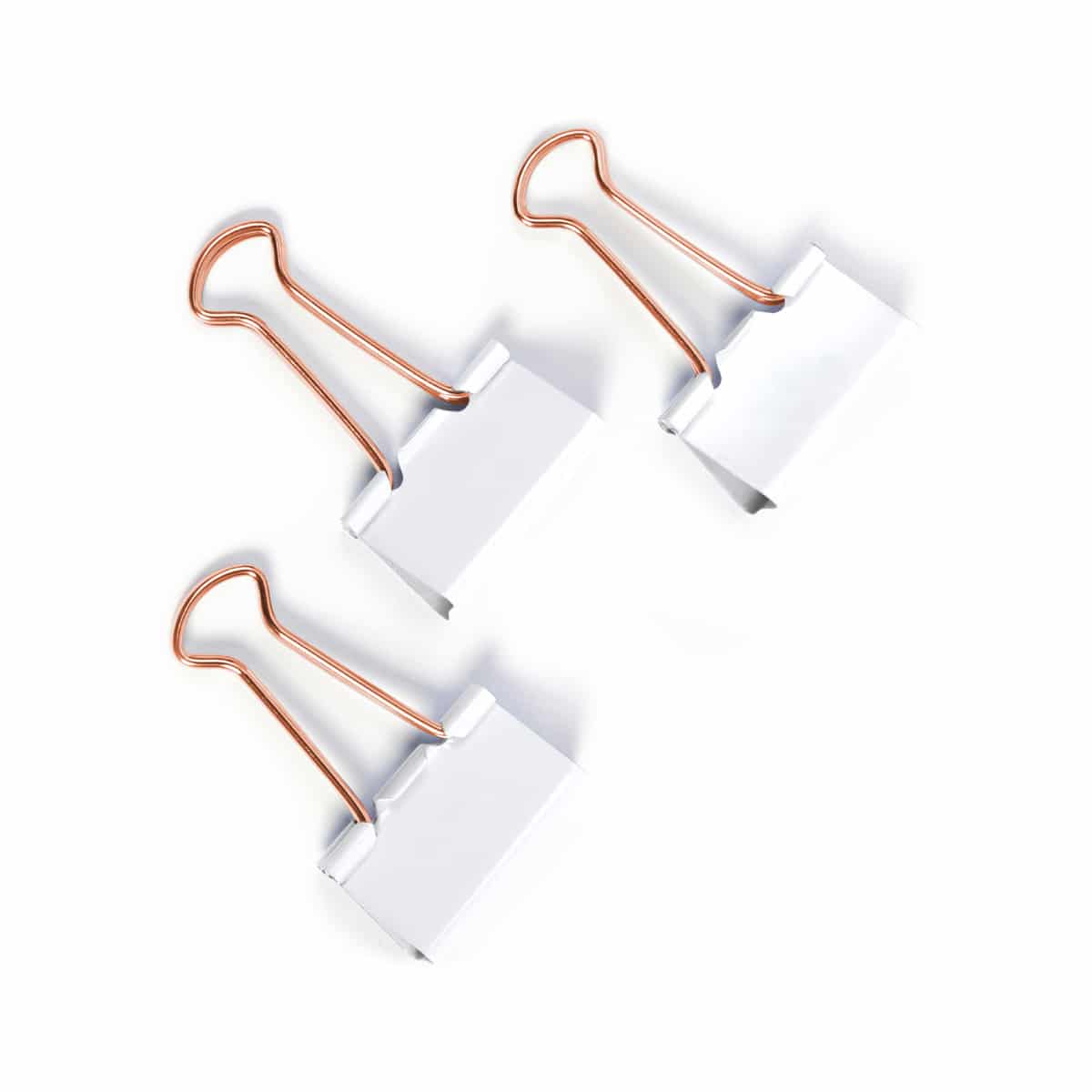 Schicke Foldback-Klammern aus Metal in weiß / roségold zum schnellen und sicheren Befestigen und Zusammenhalten von Papier und co.