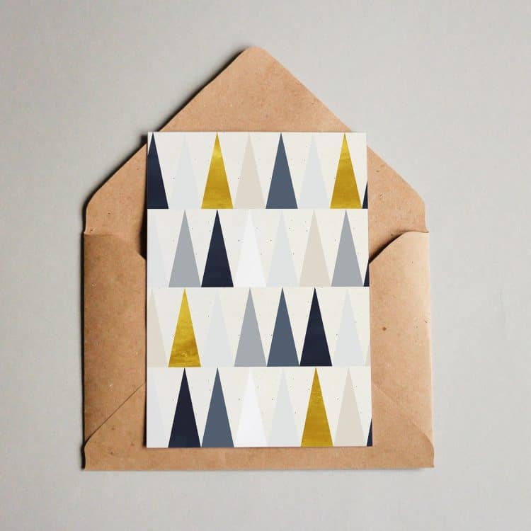 Tolle Postkarte mit schönem geometrischen grau-goldenem „Wald“-Muster